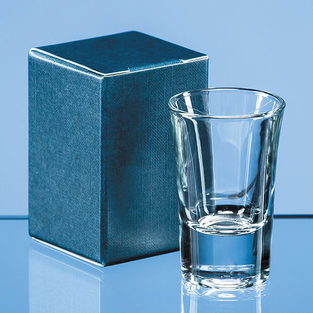 The blue flat pack gift box offers an inexpensive packaging solution that allows you to present tot glasses in an individual gift box. Gift boxes are available for the majority of the small to medium size products that we supply.